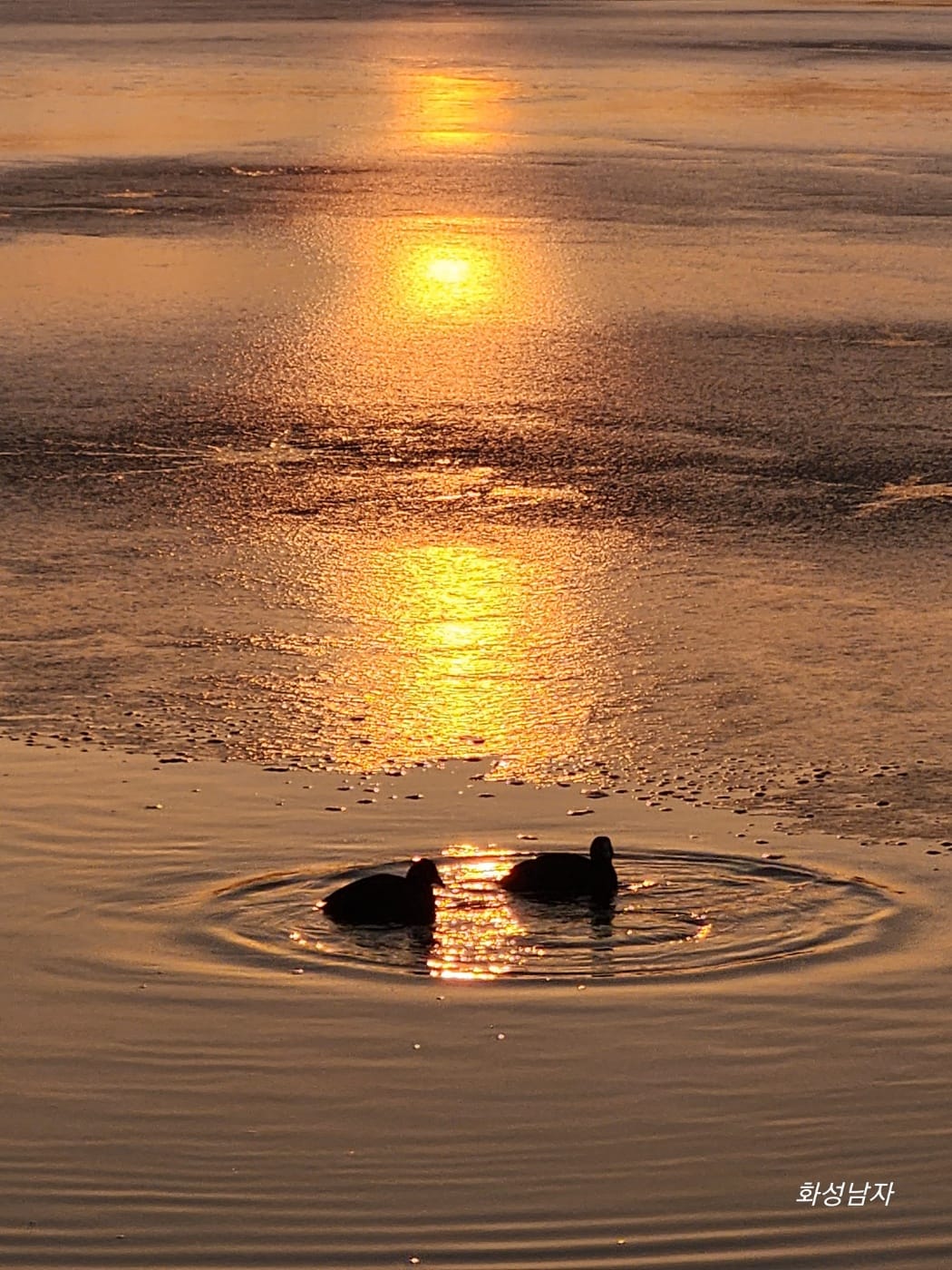 노을 속에 구름새 서둘러 집으로 돌아갑니다.