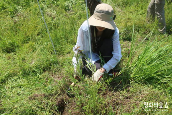 봄에는 나무를 심고, 여름의 시작과 함께 심은 나무가 잘 자랄 수 있도록 숲을 가꾸는 활동을 이어가고 있습니다. 장마가 지나고 숲 가꾸기는 계속될 예정입니다. 현장에서 직접 허리를 굽히고 땀을 흘리며 숲을 가꾸는 일은 쉽지 않지만, 어떤 활동보다 뿌듯함을 느낄 수 있는 활동임은 틀림없습니다. 나무와 자연, 그리고 숲을 위해 함께 하실 분들을 기다립니다. 아래 버튼을 클릭하시면 평숲 봉사단 신청 페이지로 이동합니다. 평화의숲과 함께 가장 가치 있는 곳에 땀을 흘려주세요!💚