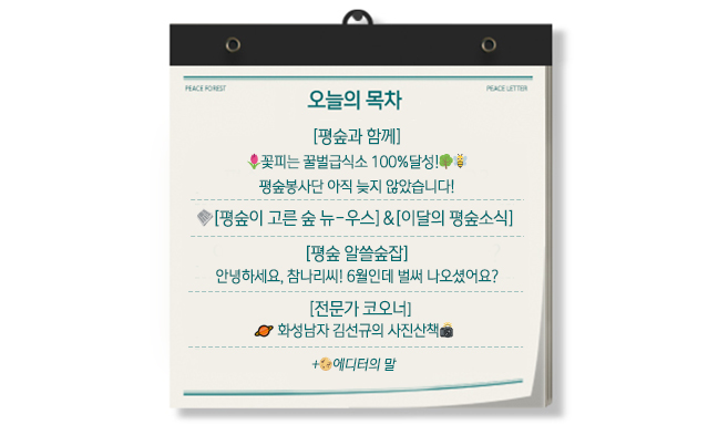 평화의숲의 한달의 소식을 간추려 전달해 드립니다. |
