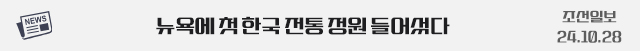 뉴욕 맨해튼에 한국 전통 정원이 생겼다니 정말 반가운 소식인데요. 한국의 아름다움을 세계에 알리는 소중한 기회라는 생각이 듭니다. 이제는 k-garden의 시대인걸까요?😊 [기사 전문보기] |