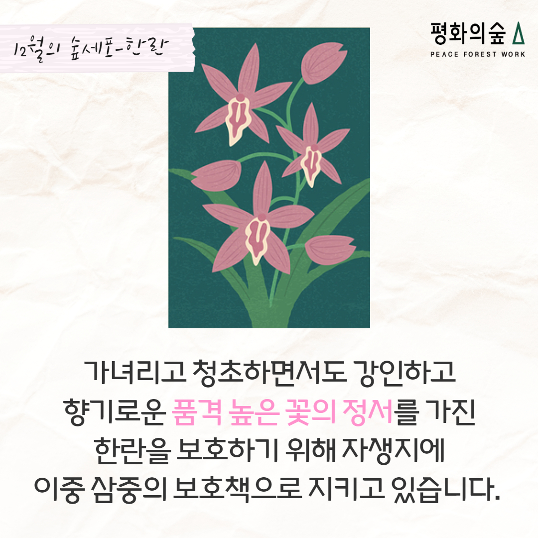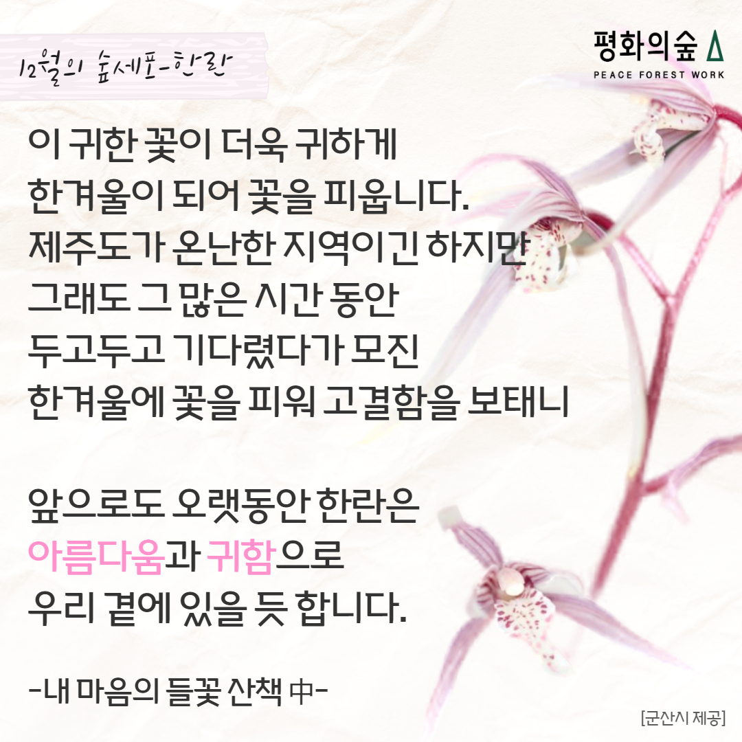 안녕하세요. 우리 모두의 평화를 위해 나무를 심고 숲을 만드는 평화의숲입니다. 12월 마지막 주에 인사드립니다. 12월도 잘 보내셨나요? 평화의숲의 12월은 그동안의 걸음을 돌아보고 새로운 한 해를 준비하는 시간이었는데요. 어떤 시간을 보냈는지 오늘 피스레터에서 확인해보세요! |